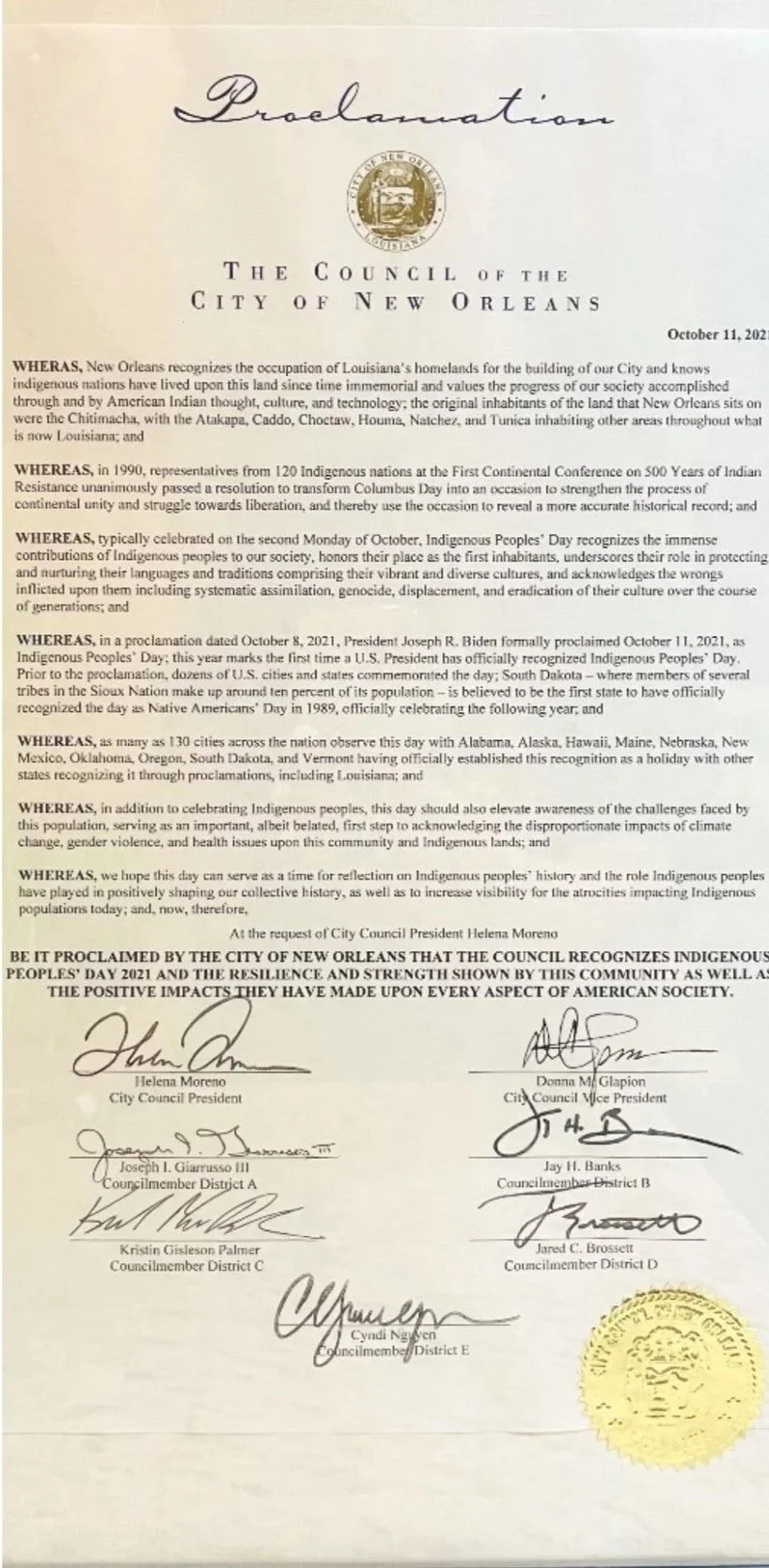INDIGENOUS PEOPLE’S DAY IS NOW AN OFFICIAL NEW ORLEANS HOLIDAY